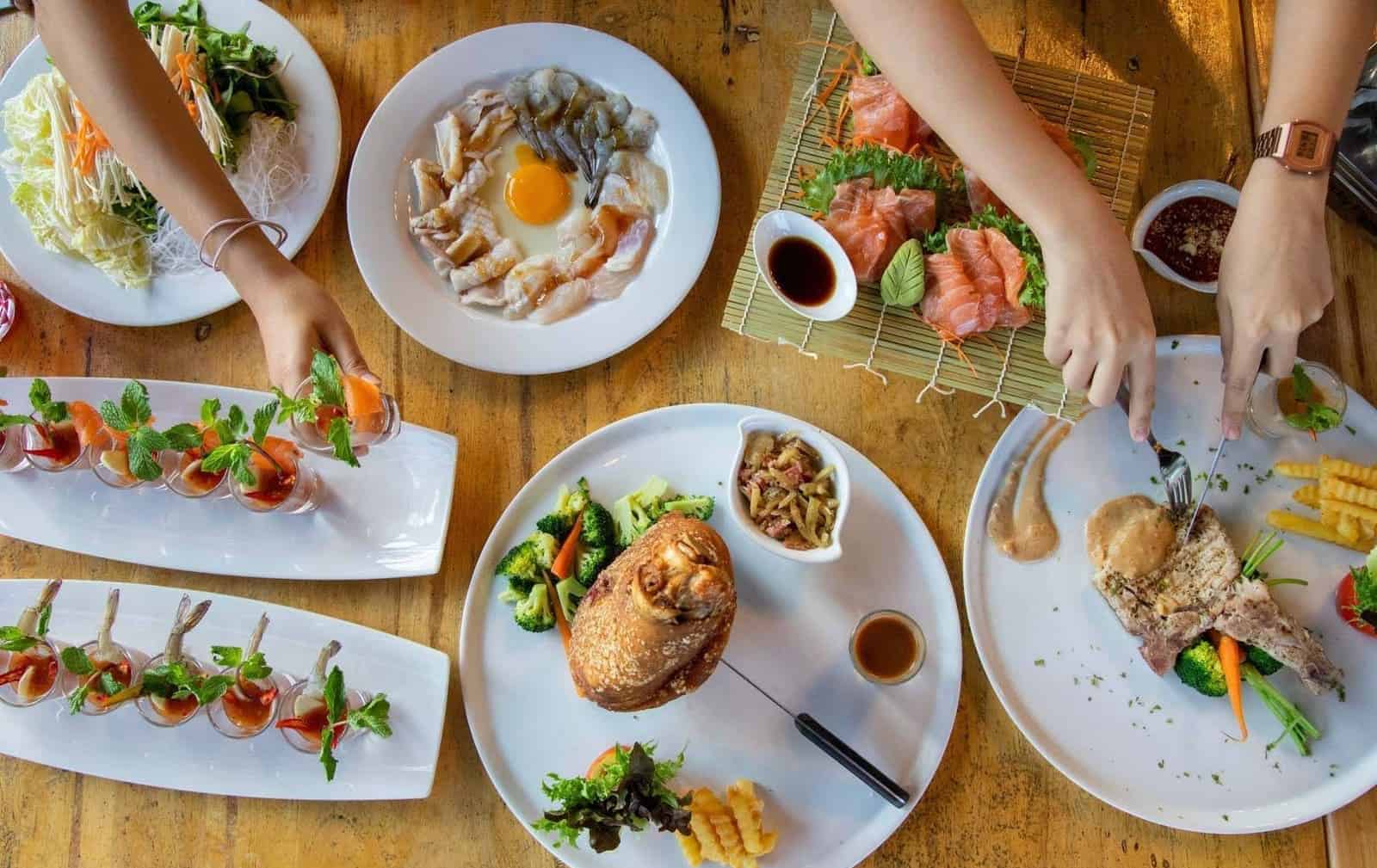 เข้าสู่เมนูอาหารของร้านกันบ้างดีกว่า “แซลมอนค็อกเทล” (ราคา 180 บาท) ใน 1 จานจะมี 6 แก้ว แซลมอนเนื้อชั้นดี คัดคุณภาพ ราดด้วยน้ำจิ้มซีฟู้ด มีพริกกับใบสาระแหน่เป็นเครื่องเคียง “กุ้งค็อกเทล” (ราคา 180 บาท) จะเหมือนกับแซลมอนค็อกเทล ต่างกันที่ใช้กุ้งมาแทนแซลมอน