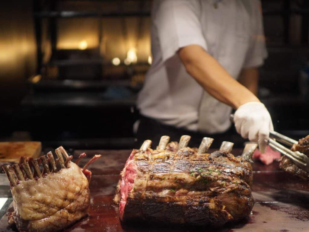 สเต็กเนื้อ – มีเดียม แรร์ นุ่มชุ่มฉ่ำ สุกกำลังพอเหมาะ กินคู่กับซอสไวน์ขาว รสครีมมี่ มันบดเนื้อเนียน และผักย่าง