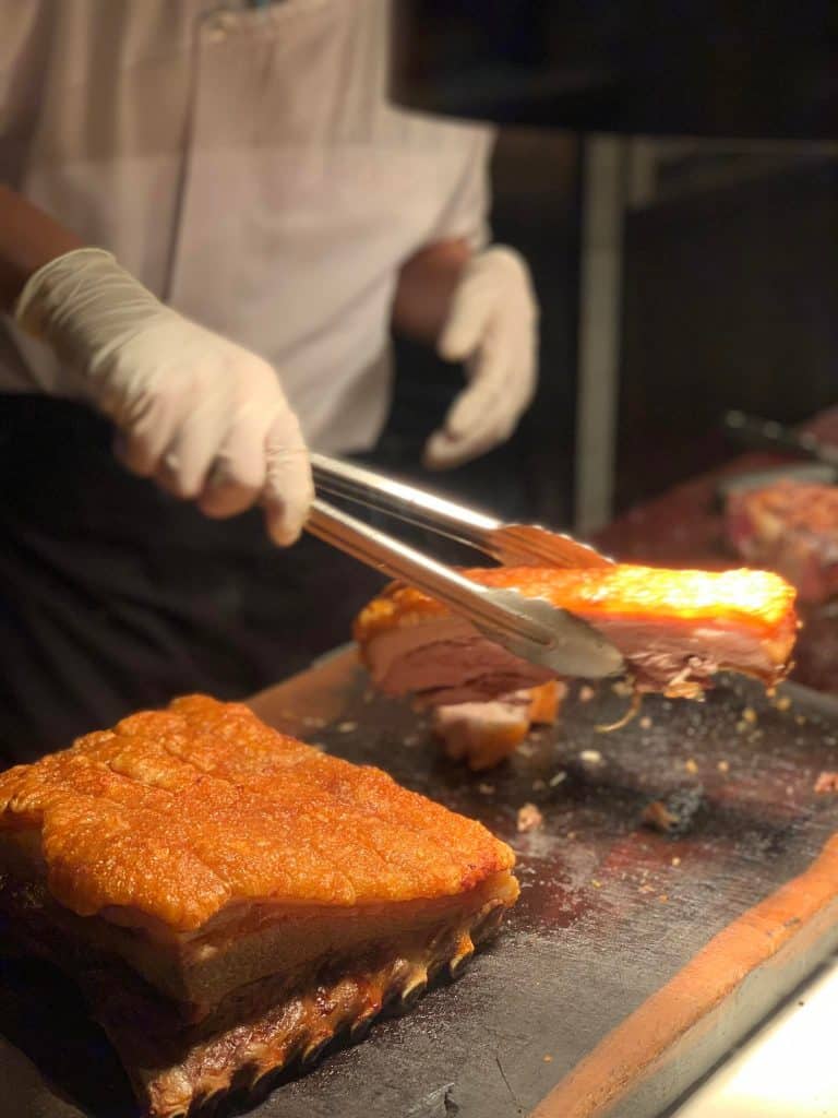 ฟัวกราส์ – ตับห่านคุณภาพเยี่ยมยอดจากประเทศฝรั่งเศส ย่างบนเตาร้อนๆ ส่งกลิ่นหอมไปทั่วห้องอาหาร เนื้อสุกกำลังดี รสชาติครีมมี่ เข้ากันได้ดีกับซอสไวน์แดงรสหวานเค็ม